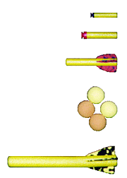 How do you get Type 1 ammo? Unfortunately as of 7/97 Type 1 ammo is no longer being produced or accepted for trade, they have been officially discontinued by Nerf®. Feel free to go to the Contacting Companies page, write down the address for Nerf®, write them a letter expressing your outrage and dissatisfaction with this decision. I warned them this would happen, and they didn't believe me. I just don't see how when a toy fires only 2/3 as far with the Type 2 ammo you can choose to discontinue the Type 1. *shrug* Well, I did warn them how upset everyone would be, so fire away guys!